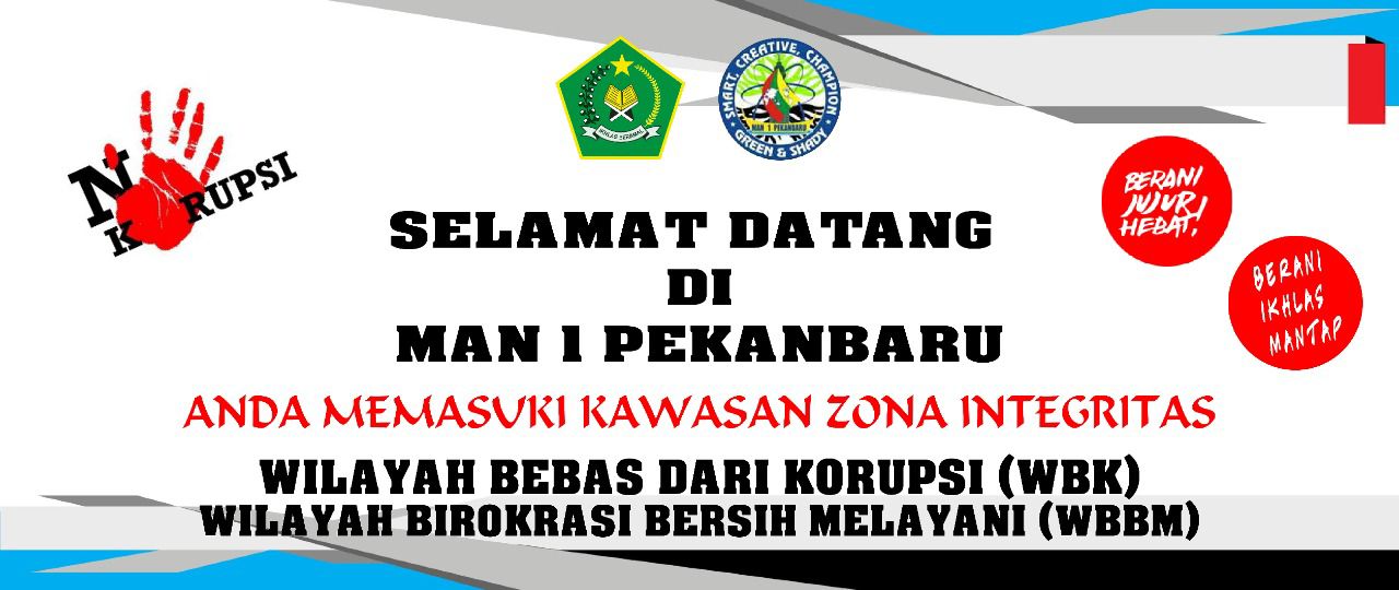 Madrasah Aliyah Negeri 1 Kota Pekanbaru adalah salah satu madrasah yang ditunjuk oleh Kantor Wilayah Kementerian Agama Provinsi Riau sebagai Madrasah yang menerapkan Zona Integritas Wilayah Bebas Korupsi (WBK)/ Wilayah Birokrasi Bersih Melayani (WBBM).
